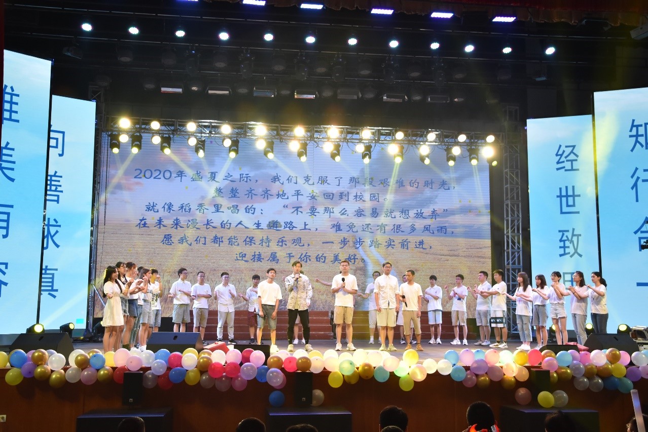 韶华度篇章在《薛定谔的设四》的欢快合唱中拉开序幕。随后,交设1706班用一场美轮美奂的古典舞表演的《莫问归程》,鼓舞大家坚定前行。在歌舞表演《离人》的悠扬动听的歌声中,现场同学们无不动容,一起挥手告别大学生活。