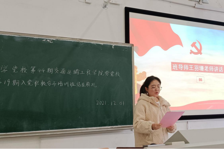分党校第19期入党积极分子培训班结业典礼在新校区D座130教室顺利举行。交通院党委副书记宋晓东老师、入党积极分子培训班班导师石晓琪老师、王羽珊老师以及本期入党积极分子培训班全体学员参加了此次结业典礼,本次典礼由石晓琪老师主持。