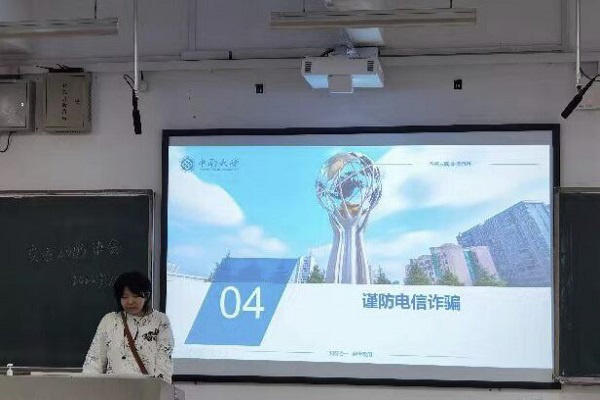 通过多种方式对学生开展线上及线下电信网络诈骗防范宣传教育,辅导员对于学生电信网络诈骗防范教育做到“每周一提醒”,以此避免同学们上当受骗。