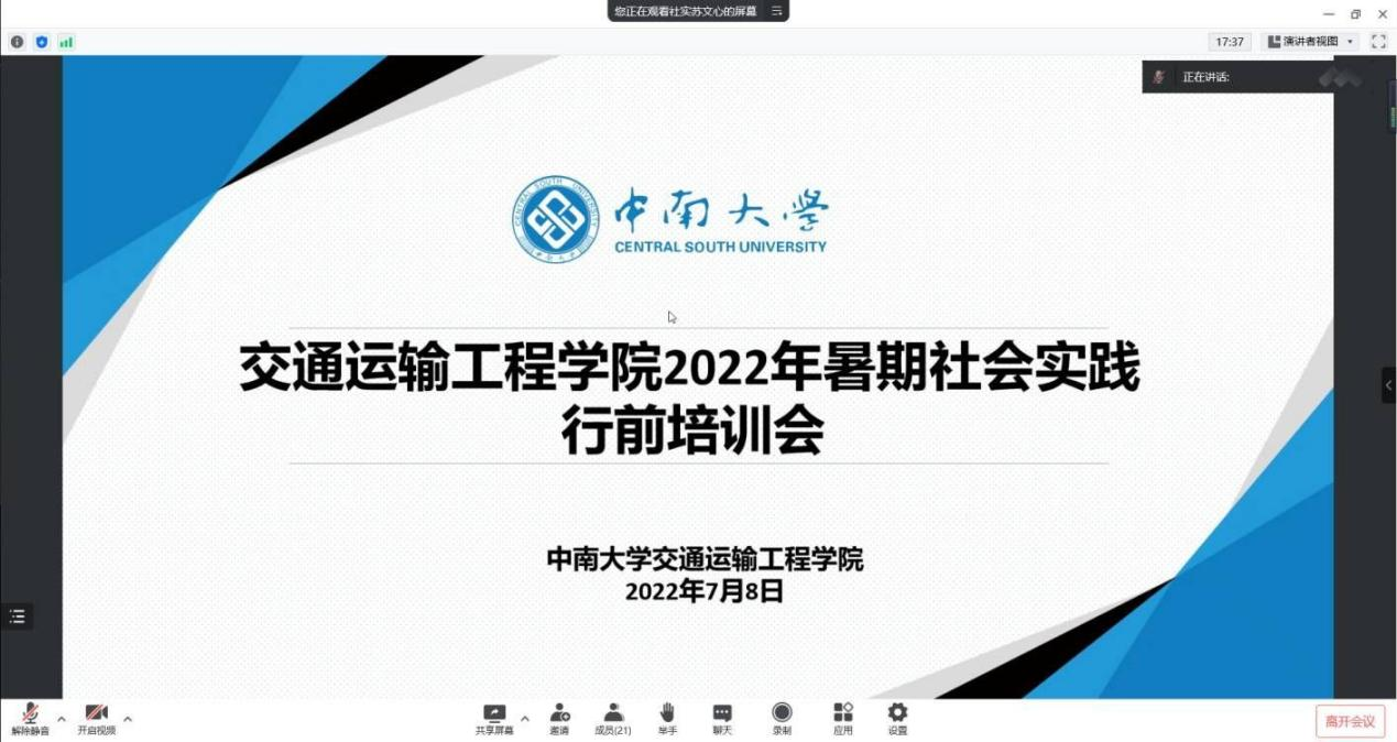 以线上形式顺利举办2022年暑期社会实践行前培训会。交通院团委副书记张健老师、郑繁简老师和交通院各暑期社会实践团队参加了本次会议。会议邀请了2021年必威