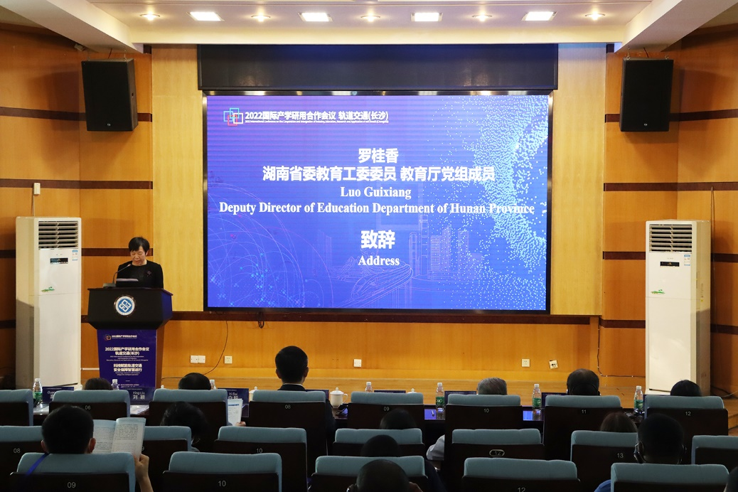 罗桂香厅长代表湖南省教育厅向会议召开表示祝贺。她指出,国际产学研用合作会议通过搭建中外高校、科研院所、企业合作对接平台,推进教育对外开放高质量发展,推动我国与全球更多高校、科研院所和企业产学研用深度合作。本次会议主题为“科技赋能轨道交通、安全落地智慧运行”,旨在深入交流和探讨轨道交通关键科技发展前沿,推动全球交通安全可持续发展,积极探索后疫情时代国际产学研用合作新模式,共同谱写开放合作新篇章,共创产学研用美好未来。
