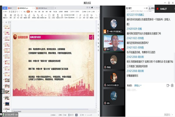 研究生会主办,研究生第二、第四党支部联合协办,邀请2017级硕士研究生彭洋、2018级硕士研究生毕伟及优秀青年志愿者罗湘钰主讲。220余名同学通过线上平台积极参与活动,同学们在学习理论知识、汲取备考经验的同时,热烈讨论大学生应该如何参与志愿服务活动、力所能及服务社会。