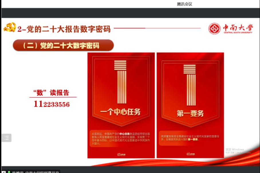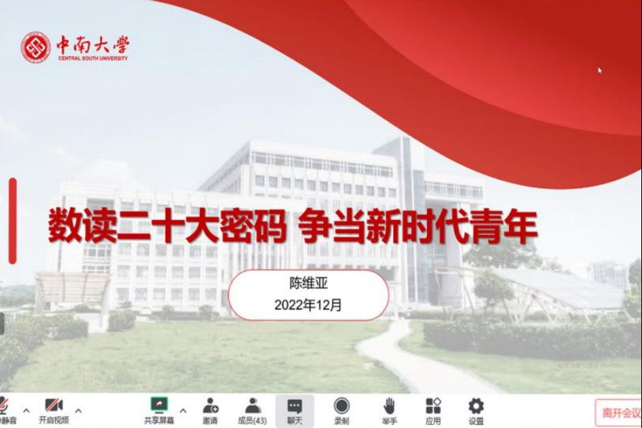 党委委员、副院长陈维亚教授线上带领交通运输与物流工程学生党支部、博士研究生第六党支部开展了“数读二十大密码,争当新时代青年”主题党课。此次党课由交通运输与物流工程学生党支部书记张佳琪老师主持,两个党支部全体同志参加。