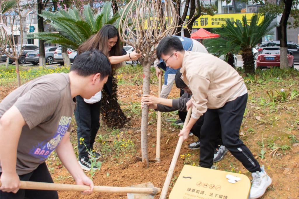 各学生组织主要学生干部共同参与到这次活动中。志愿者们在园艺工人的指导下进行了挖坑、施肥、植树、填土、压实、浇水等多个环节,在这个过程中学到了很多有关于植树爱林的知识,切实体会到劳动和收获的快乐。