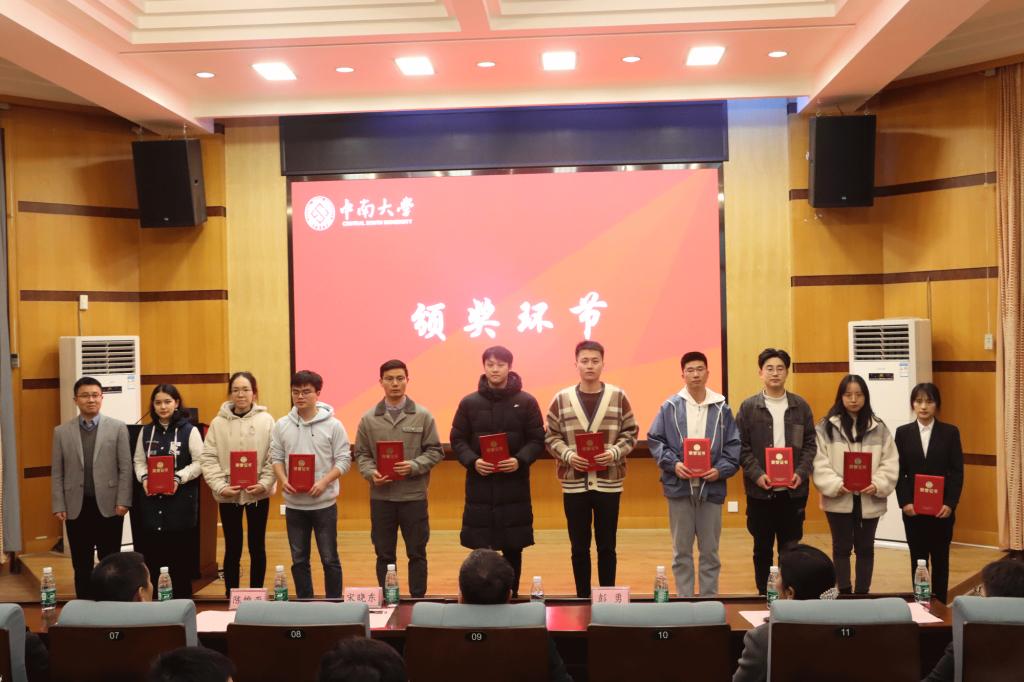 党委副书记宋晓东宣读2022年优秀学生和优秀集体表彰名单,并由陈维亚副院长为优秀本科生集体、个人代表颁奖,彭勇副院长为优秀研究生集体、个人颁奖。