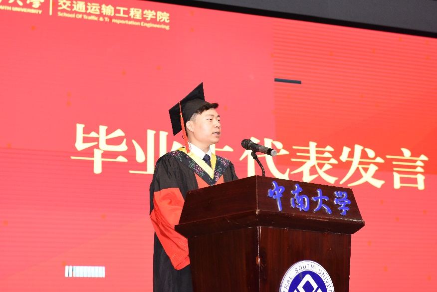 同向同行、合力发展所取得的辉煌成就。之后,他语重心长地谈到:“时代是青年发展最宝贵的沃土,青年是时代发展最蓬勃的动力。”勉励在座学子在面对国家需求时,应勇担时代使命;面对个人养成时,应锤炼品德修养;面对职业发展时,应练就过硬本领;面对前程闯荡时,应发扬中南精神。最后,高院长深情谈到:“青山不改,绿水长流,山水有相逢。亲爱的同学们,请相信,母校永远会是你们的港湾。”