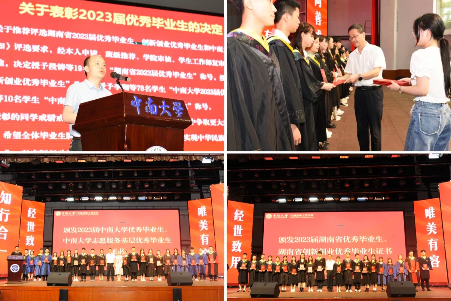 2023届志愿服务基层优秀毕业生名单。院党委书记贺志军为湖南省优秀毕业生、湖南省创新创业优秀毕业生颁发荣誉证书,副院长张英贵、韩锟为必威