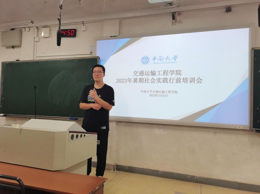 为确保暑期社会实践活动顺利开展,7月6日下午两点,交通院2023年暑期社会实践行前培训会于新校区A座110举行。会议由社会实践中心董晨浩同学主持,以线上和线下形式同步进行。交通院团委书记张健老师、交通院新闻宣传中心陈怡莹同学、各实践团队队长出席本次会议。