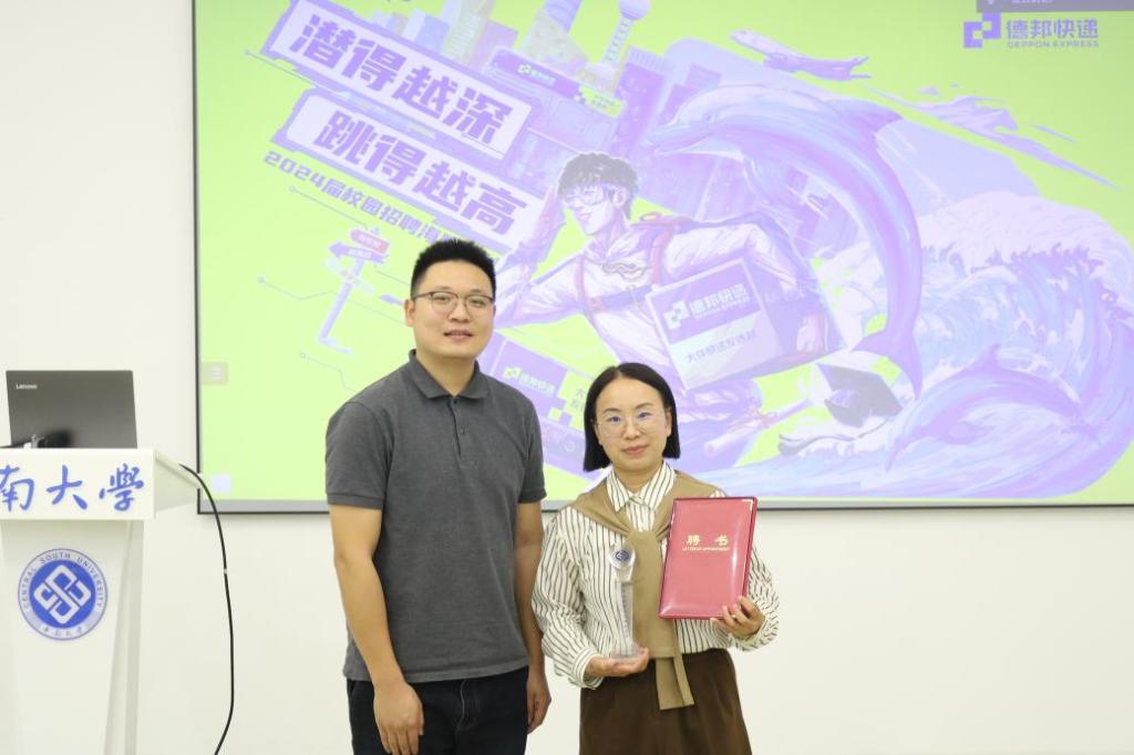 代表丁德孝老师上台进行总结。他首先代表同学们对李老师表达了诚挚的感谢,并表示这次宣讲会对于大二的同学们来说是十分难得的机会。他强调,大二是关键的一年,希望同学们能够借助这次宣讲会,找准自身发展方向,为接下来的大学生活做充足的准备。最后,丁德孝老师向李贝颁发了“必威