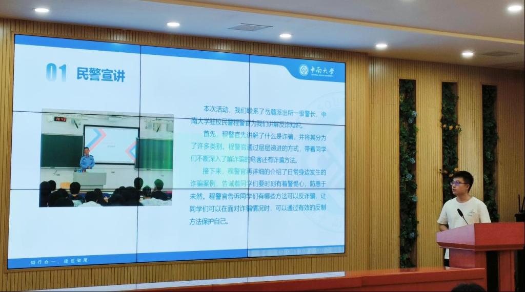 团支书代表李函墨同学就活动开展、宣传、创新、总结等方面进行了经验分享。他以反诈主题活动为例,介绍了观看电诈网络安全视频、剧本创作、倡议签字、微电影制作、民警宣讲等活动的开展情况。他建议团支书们要学会衔接朋辈系列资源,发挥榜样力量,创新活动形式,搭建多层次载体。李函墨同学出色的工作能力得到了评委们的一致认可,最终在此次比赛中取得了第二名的好成绩。