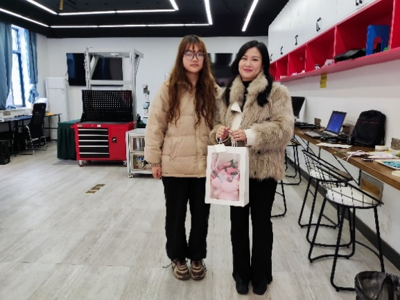 还特别安排工作人员在将鲜花礼物送到在工作岗位上坚守奋斗的老师们手上。当她们接到礼物的时候,脸上洋溢起了幸福喜悦的笑容。