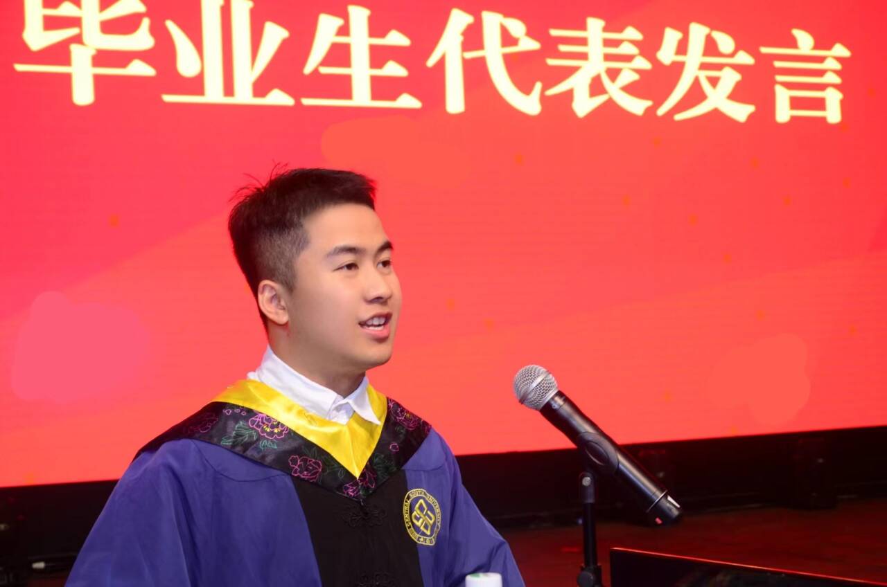 本科生毕业生代表付泽俊、研究生毕业生代表陶世锬相继发言,回顾校园生活的点滴,表达对母校、必威