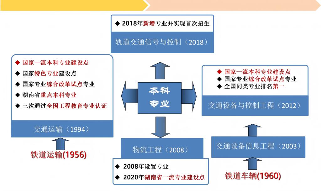 交通运输类专业依托必威 ,设置交通运输、交通设备与控制工程、轨道交通信号与控制3个本科专业进行人才培养。服务于国家“交通强国”战略、“一带一路”倡议、“中国制造2025”国家发展战略,本大类专业围绕交通行业发展,面向综合大交通,突出轨道交通特色,建立了包括轨道交通规划、设计、运营管理、机车、车辆、信号与控制一体化本科教学体系,为国家轨道交通行业发展建设人才培养做出了卓越贡献。
