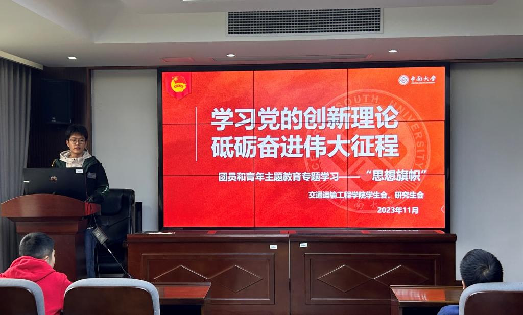 为配合正在开展的团员和青年主题教育,11月7日下午,交通院团委、学生会、研究生会于交通楼425开展以“学习党的创新理论,砥砺奋进伟大征程”为主题的“思想旗帜”专题学习会,旨在深化对习近平新时代中国特色社会主义思想的学习和理解,强化理想信念,为国家复兴贡献青春力量。本次学习会由学生会主席吉文韬主持,团委、学生会、研究生会全体骨干成员参会。会议伊始,主持人引用习近平总书记关于理想信念是中国共产党人的精神...