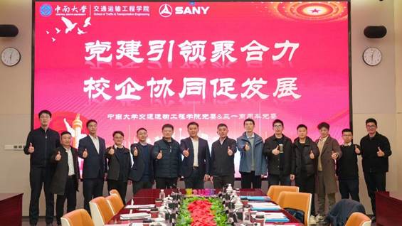 党委书记袁世平、院长黄合来率7名师生代表前往交流。三一集团副总裁吴盛楠、研究院院长邓华侨、长沙公司党支部书记应业勇共同参加活动。